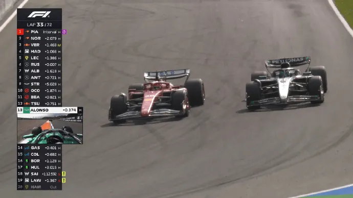 搭载软胎的维斯塔潘尝试进攻,但两辆迈凯伦都守住了位置;