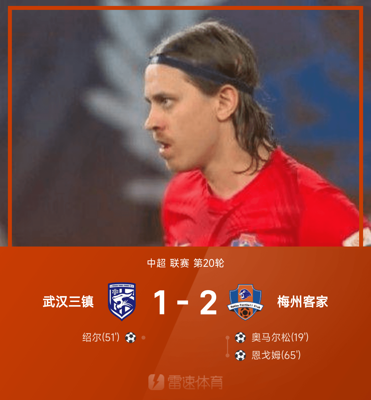 08月10日讯 25赛季中超联赛第20轮,武汉三镇主场迎战梅州客家。全场比赛,恩戈姆发挥出色,传射+制胜,奥马尔松先拔头筹,绍尔破门一度扳平仍难救主。最终梅州客家客场2-1战胜武汉三镇。